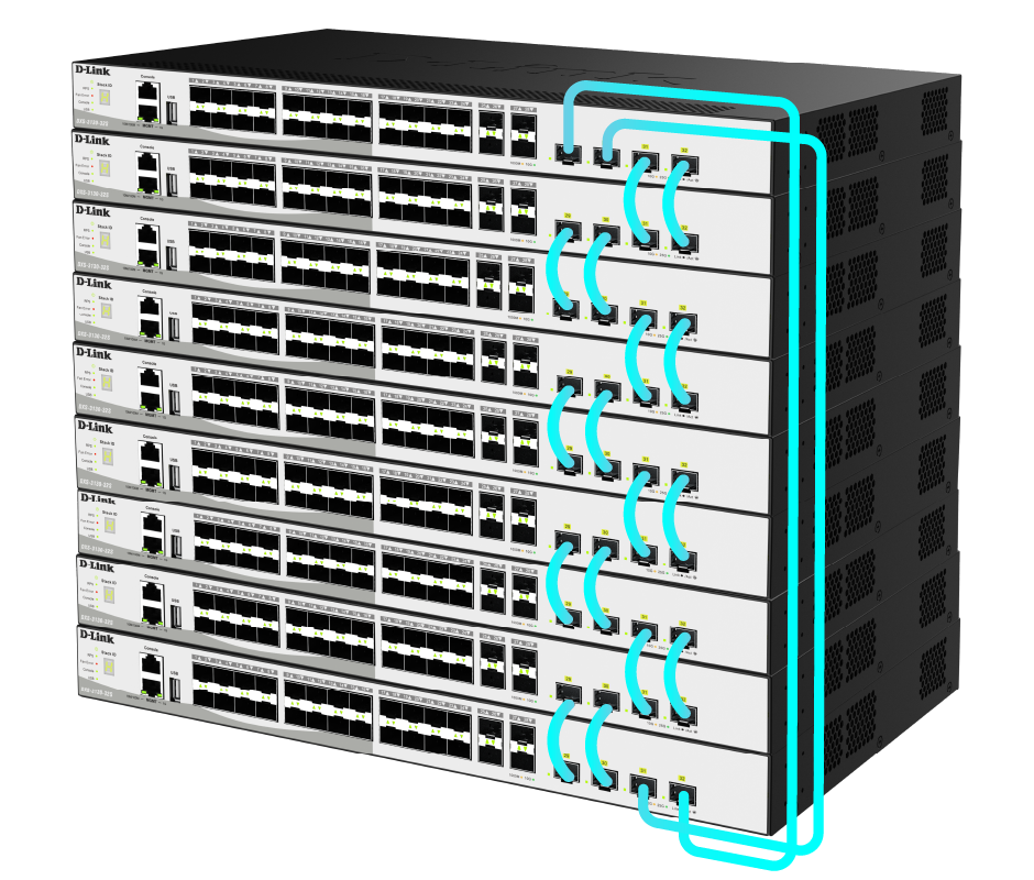Scale your network with the DXS-3130 series by stacking up to 9 switches into a single physical or virtual unit. This simplifies management, improves redundancy, and allows control of the entire stack through one IP address. With up to 200 Gbps, physical stacking boosts capacity to meet growing network demands.