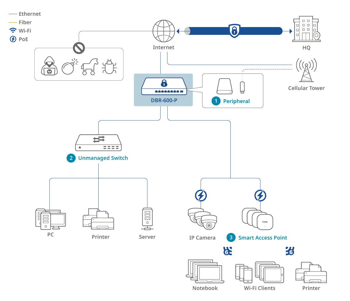 Discover the DBR-600-P business router's capabilities through our detailed topology diagram.