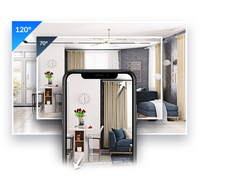 Versatile home security camera vision with 120-degree wide viewing angle and 4x digital pinch-to-zoom.