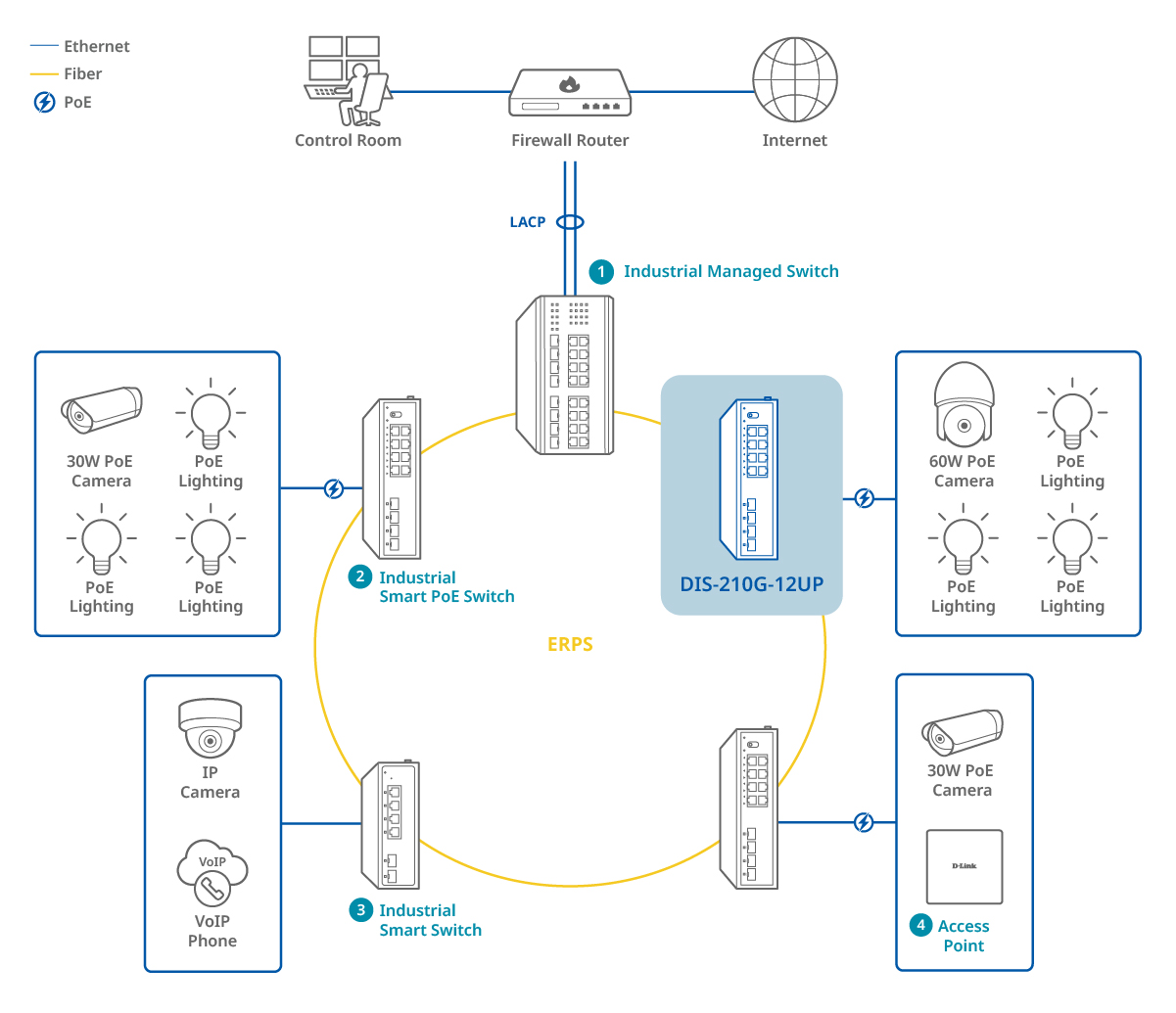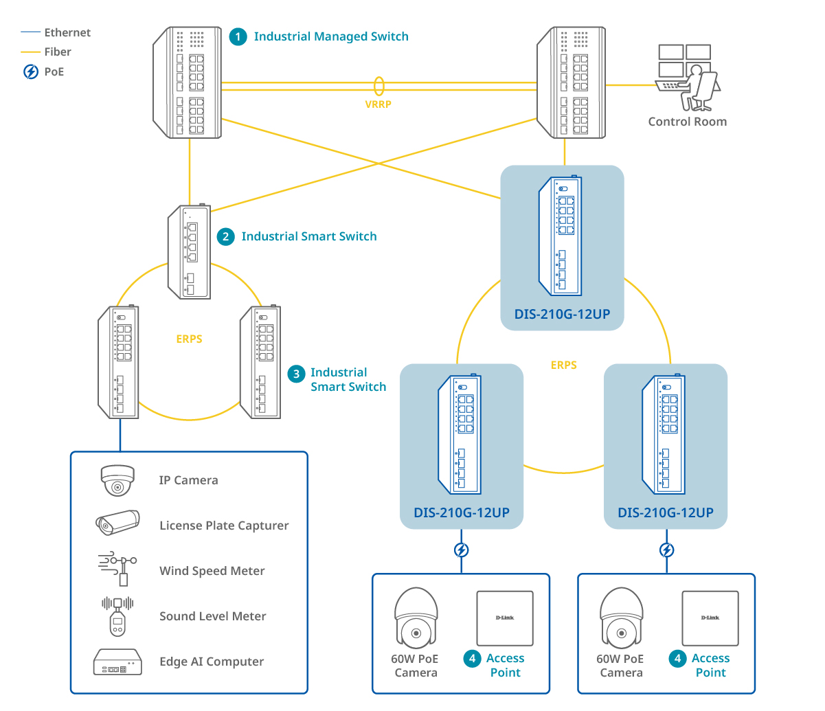 - ERPS ring ensures continuous monitoring even if a link fails