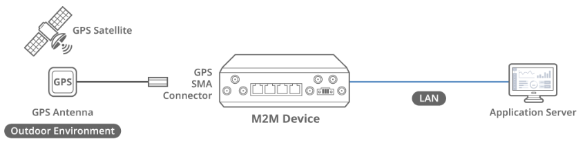 The Global Positioning System (GPS) is a space-based technology. Once you turn on GPS, only four satellites are needed to quickly determine the user's location and altitude on Earth. It is very important to attach the GPS antenna to the device and place it outside (not inside a building). In this example, we will show the GPS configuration rules of M2M devices and enable GPS capability for location-based service applications.