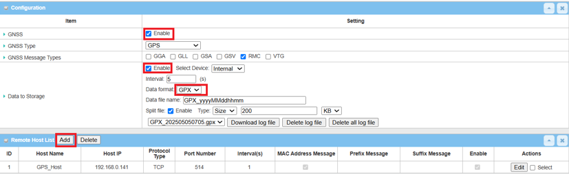 GNSS Message Types Select the RMC GNSS Message Types for transmitting and recording GPS data