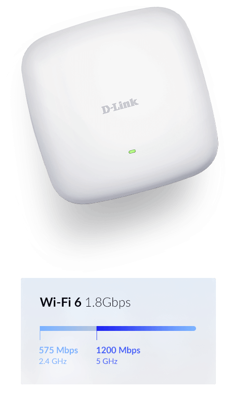 DAP-X2810 的 Wi-Fi 6 802.11ax 速度高達 1,800 Mbps,可提供閃電般的連線速度,即使在高度擁擠的環境中,也能實現大數據傳輸和優質視訊串流。