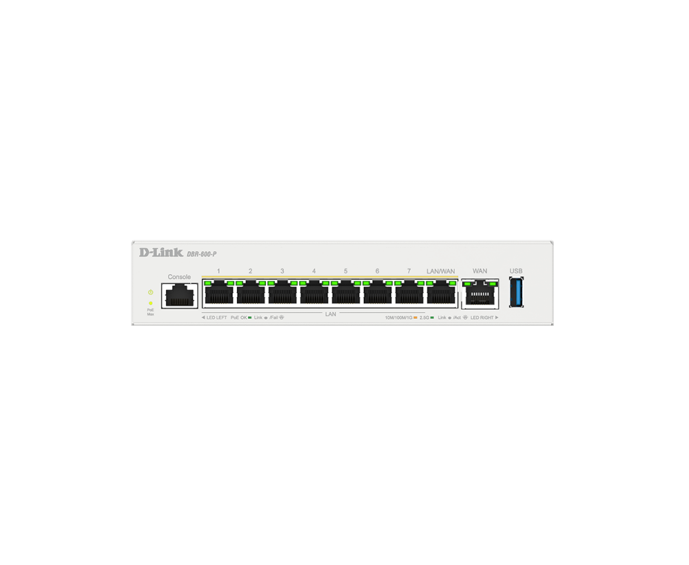 它提供高密度2.5G 高速網路埠,並可透過其多樣化的介面快速靈活地擴展網路容量。對於遠距辦公人員,DBR-600-P 可確保隨時隨地無縫存取辦公室網路。對於小型辦公室,它可有效阻止惡意流量,並保護您的網路安全。此外,內建的管理平台簡化了 AP 管理,從而提高效率和整體效能。