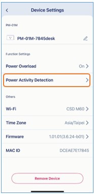 步驟 5: 在「臨界值」欄位中輸入您希望設定的瓦數,並分別設定「無電源偵測」與「高耗電偵測」的持續時間。
