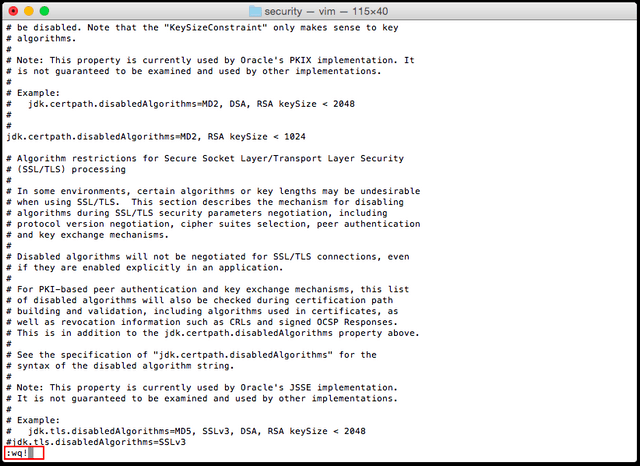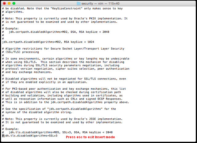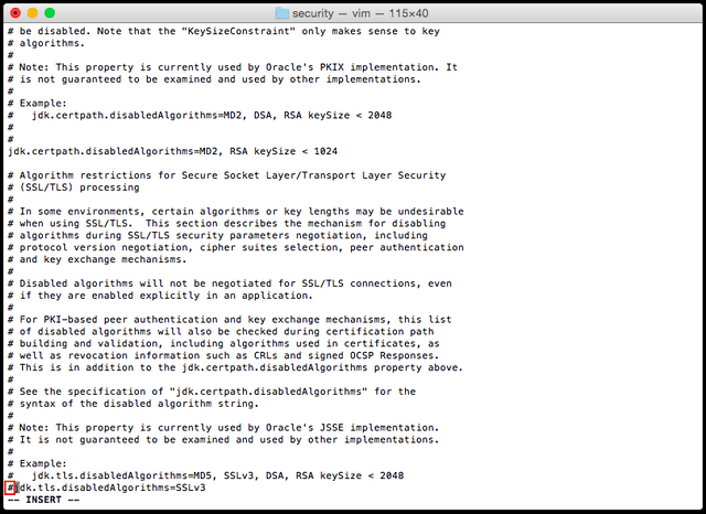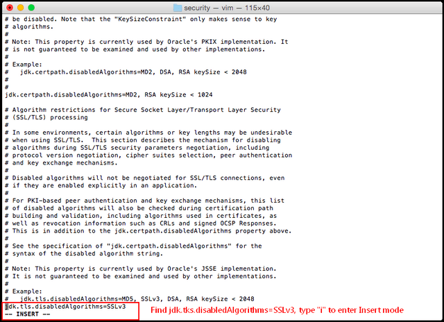5. Add “#” in front of the line “jdk.tls.disabledAlgorithms=SSLv3” as “# jdk.tls.disabledAlgorithms=SSLv3”