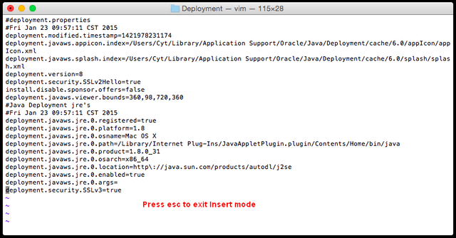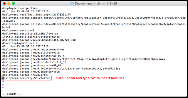 11. Add the command line “deployment.security.SSLv3=true” and press “enter” on your keyboard.