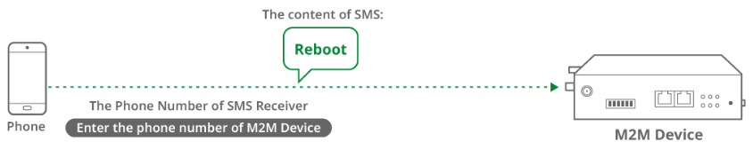 Let us take the DOM-530-TSO and a mobile phone as an example. When the user sends an SMS message to the DOM-530-TSO with a reboot message, the DOM-530-TSO reboots.