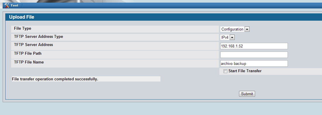 Check the "Start File Transfer" box and then press the "Submit" button to start transfer