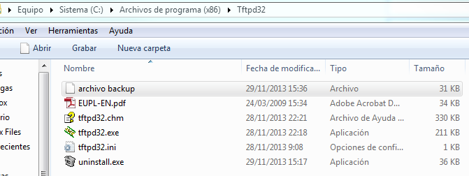 6. Once the transfer is complete you can find the backup file in the installation path of the TFTP server