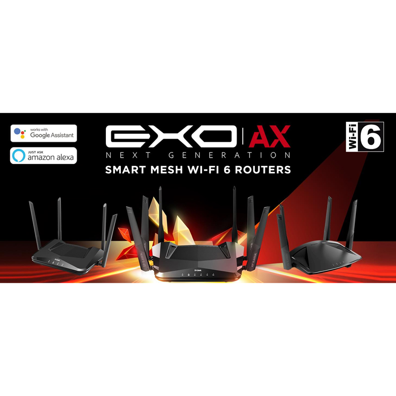 D-Link launches EXO Smart Wi-Fi routers featuring Wi-Fi Mesh, McAfee protection, and voice control with Alexa and Google Assistant.