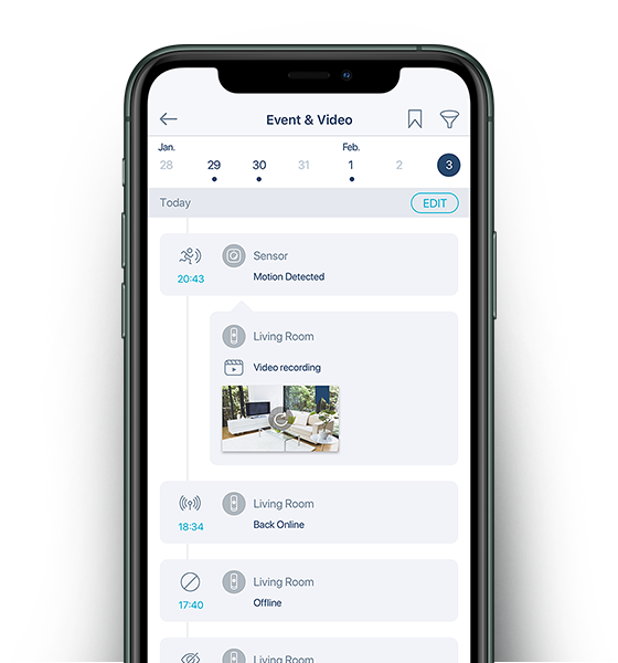 Cloud recording gives you peace of mind, with videos automatically sent to the mydlink™ Cloud. Enjoy 1-year free 24‑hour footage retention, with optional premium Cloud storage plans starting at £2.29/month. Find any clip by filtering your recordings by Event Type, Date, Device, and Location. Know exactly what's going on - watch recordings from the Cloud or download videos clips to your phone anywhere, anytime.