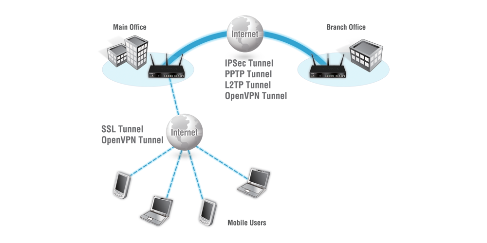 Dead Peer Detection Hub and Spoke IP Authentication Header (AH) IP Encapsulating Security Payload (ESP) IPSec NAT Traversal IPSec/PPTP/L2TP Server VPN Tunnel Keep Alive |