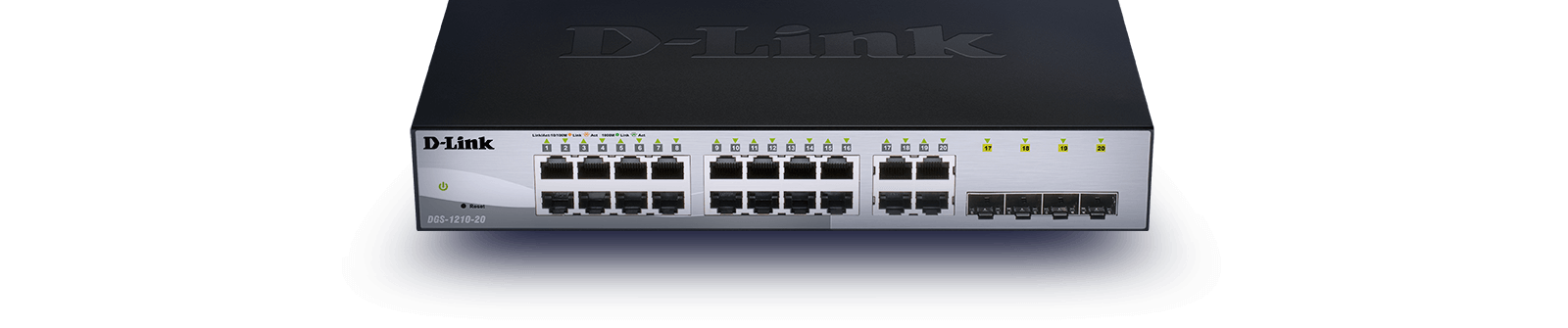 The DGS-1210 Smart+ family has advanced network management options, accessible via Compact CLI or the Web-based UI, that equip your business with network capabilities such as VLANs, multiple spanning tree protocol (MSTP), link aggregation (LACP), static routing, dual software images, and dual configuration files.