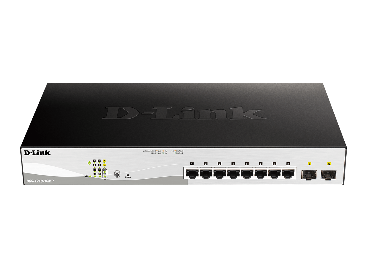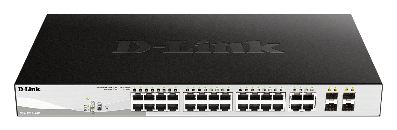 The DGS-1210 Smart+ Series includes a range of high power budget PoE-enabled switches for businesses looking to power larger deployments of VoIP phones, wireless access points or network cameras.