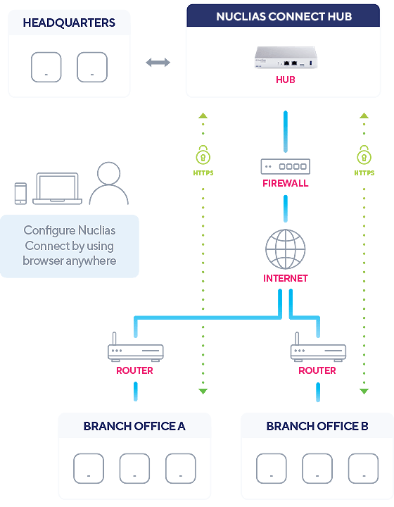Communication between Nuclias Connect and APs via HTTPS for increased privacy.